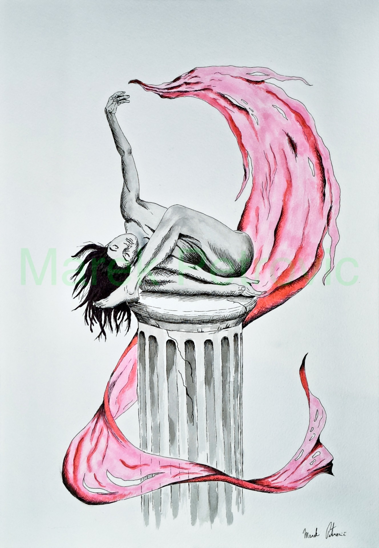 Ink on watercolor paper.